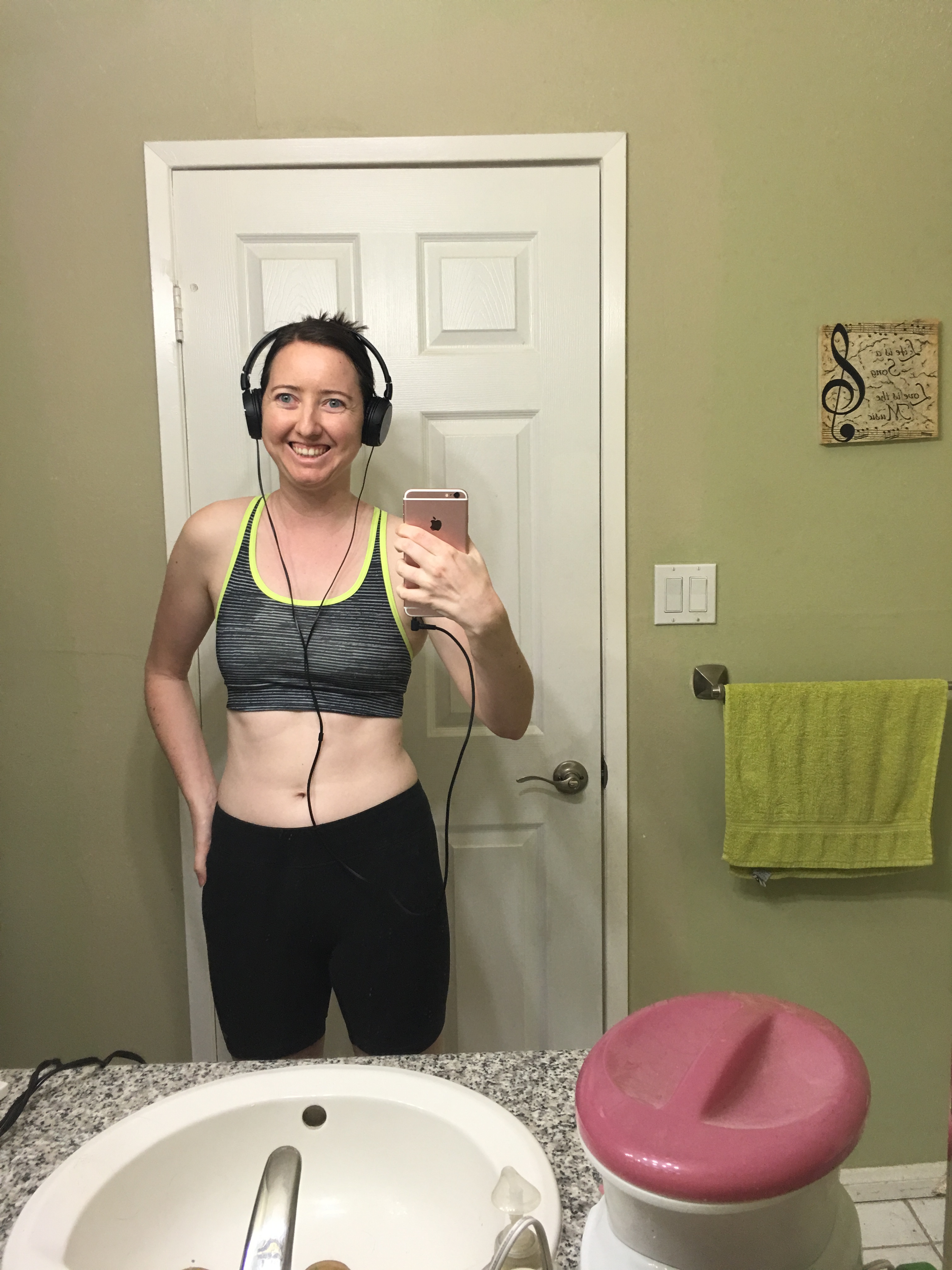 I was up bright and early to get one last workout in. Gentle walking can help increase blood flow to the uterus and help with everything going on.