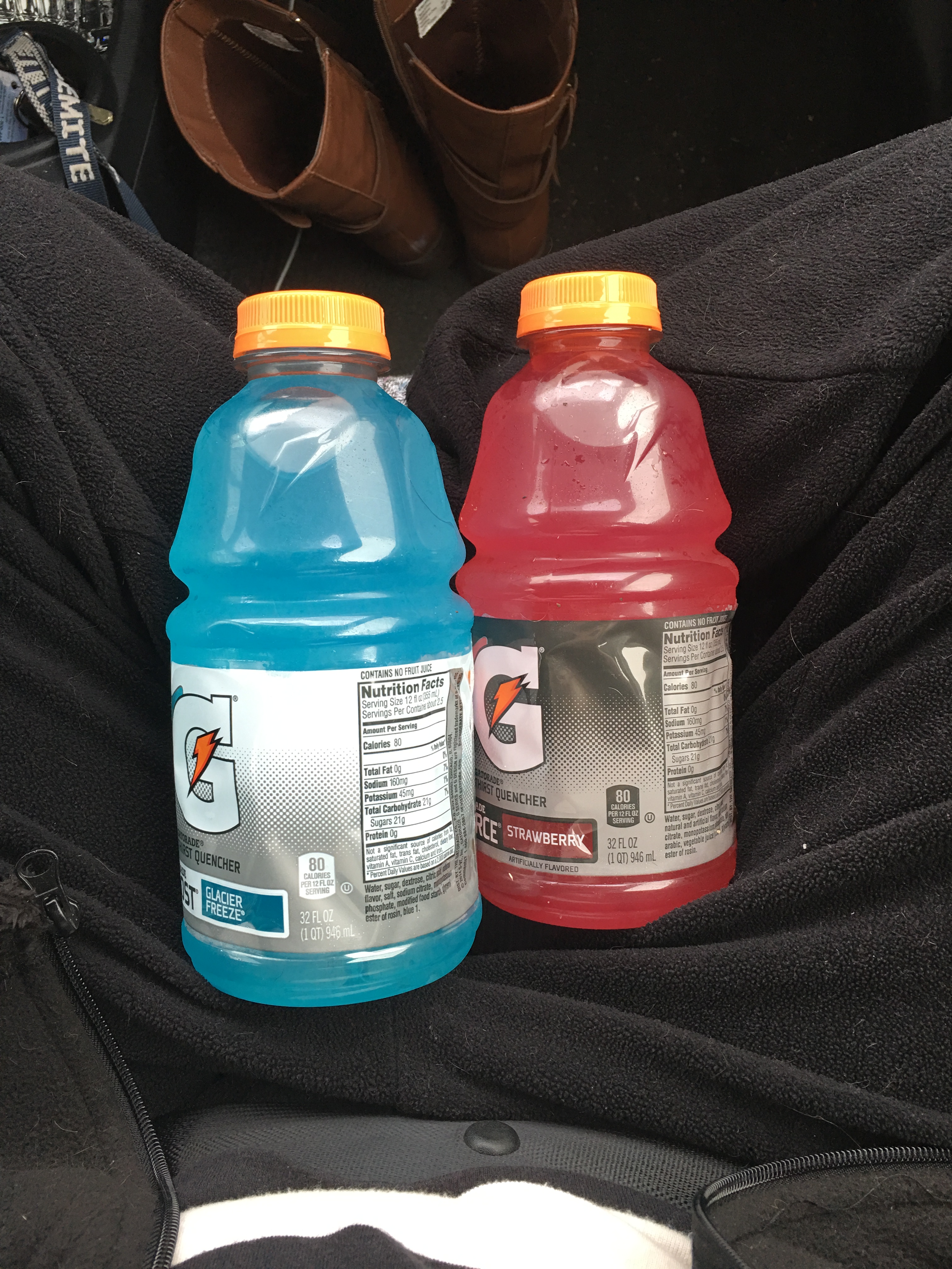 My bladder has to be full for the doctor to know where to put the embryos, so I was told to drink 32 ounces of liquid between 9 and 9:15. I was also told this last time, and ended up having to drink more at the clinic, then having some other unpleasant things happen, so I decided I would try and drink 64 ounces of liquid before we got there. I almost made it, but not quite. I was probably a good thing I didn’t, because it ended up being too much and my bladder was too full!